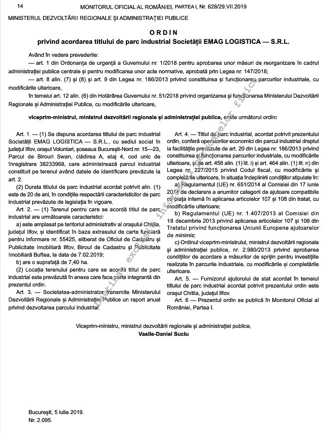 Depozitul din Parcul Logistic Emag Operations a fost inaugurat în octombrie 2019 si este unul dintre cele mai mari centre logistice pentru curierat din România. Acesta are o suprafață de 22.000 m² și este amplasat pe un teren de 100.000 m², situat pe Centura Capitalei, în apropierea orașului Chitila .